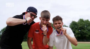 In verschiedenen Disziplinen stellten die KiKA-Moderatoren ihre sportlichen Fähigkeiten unter Beweis. Sie traten im Seilspringen, Weitsprung, Turnen und Sprint gegen den 14-jährigen Matheo, immerhin Süddeutscher Vize-Meister in der Sprintstaffel, an. Wer von den Dreien nahm wohl die meisten Medaillen mit nach Hause?